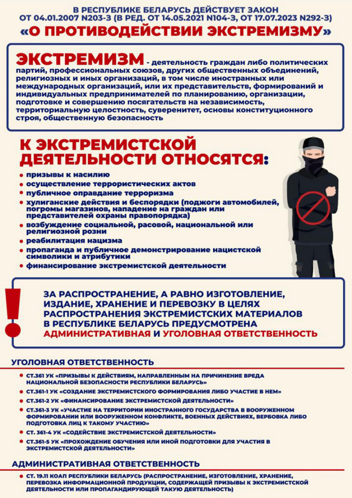 …Лица, которые участвуют или осуществляют любую передачу сведений представителям экстремистского формирования (любая отправка информации, интервью и иное содействие экстремистскому ресурсу), признаются участниками этого формирования и будут привлечены к ответственности по ст. 361-1 и 361-4 УК Беларуси (до 7 лет лишения свободы!!!).
