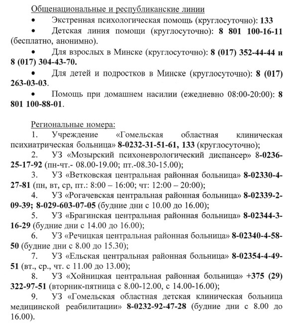 Телефоны службы экстренной психологической помощи